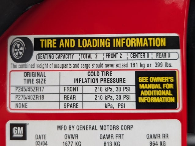 If you wish to have vehicle shipped to you, that is a separate charge determined by distance. Please use the listed price as the most up to date price. Boasting superb craftsmanship, this 2004 Chevrolet Corvette practically sings Puccini. With a Gas V8 5.7L/346 engine powering this Automatic transmission, it is an understated assertion of your dominion over the open road. It's outfitted with the following options: TRANSMISSION, 4-SPEED AUTOMATIC, ELECTRONICALLY CONTROLLED WITH OVERDRIVE (STD), SOUND SYSTEM, ETR AM/FM STEREO WITH CD PLAYER includes seek-and-scan, digital clock, auto-tone control, speed-compensated volume and TheftLock (STD), MOLDINGS, BODYSIDE, BODY-COLOR, HIGHWEAR NUANCE LEATHER SEAT TRIM (STD), Wipers, intermittent, front, Windows, power, includes driver and passenger express-down, Visors, illuminated vanity mirrors, driver and front passenger, Trunk, rear, includes remote release, Transmission, 4-speed automatic, electronically controlled with overdrive, and Traction control, all-speed . The Accessories include 2 Master Keys.