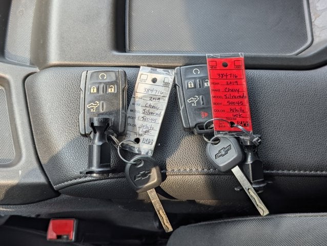 If you wish to have vehicle shipped to you, that is a separate charge determined by distance. Please use the listed price as the most up to date price. Grand and graceful, this 2019 Chevrolet Silverado 1500 will envelope you in well- engineered charm and security. With a Gas V6 4.3L/262 engine powering this Automatic transmission, you will marvel at this unique synergy between the forces of mother nature and the laws of physics. It is well equipped with the following options: WHEELS, 18" X 8.5" (45.7 CM X 21.6 CM) HIGH GLOSS BLACK PAINTED ALUMINUM (STD), TRANSMISSION, 6-SPEED AUTOMATIC, ELECTRONICALLY CONTROLLED (STD), TIRES, LT275/65R18C MT BLACKWALL GOODYEAR WRANGLER DURATRAC (STD), THEFT-DETERRENT SYSTEM, UNAUTHORIZED ENTRY, TAILGATE, GATE FUNCTION MANUAL with EZ Lift, includes power lock and release, SUMMIT WHITE, SEATS, FRONT 40/20/40 SPLIT-BENCH (STD), REMOTE VEHICLE STARTER SYSTEM, REAR AXLE, 3.42 RATIO, and LPO, BLACK TUBULAR ASSIST STEPS, 6" RECTANGULAR . The Accessories include 2 Master Keys.