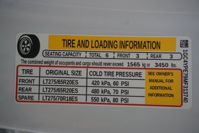 - Tire, spare LT275/70R18 all-terrain, blackwall (Included and only available with (QF6) LT275/70R18E all-terrain, blackwall tires, (QG3) LT275/70R18 mud-terrain, blackwall tires or (QF9) LT275/65R20 all-terrain, blackwall tires with (E63) Durabed, pickup bed. Available to order when (ZW9) pickup bed delete and (QF6) LT275/70R18E all-terrain, blackwall tires are ordered.)
