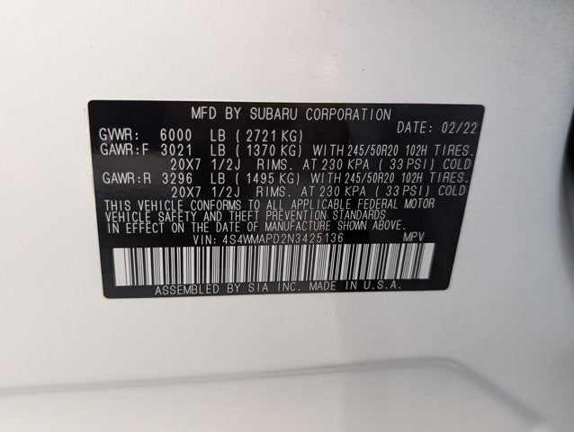 If you wish to have vehicle shipped to you, that is a separate charge determined by distance. Please use the listed price as the most up to date price. This vehicle is equipped with bucket seats in the second row. Passengers will enjoy a more comfortable ride and accessing the third row is easier. Elegantly expressive, this 2022 Subaru Ascent practically sings Puccini. With a Intercooled Turbo Regular Unleaded H-4 2.4 L/146 engine powering this Variable transmission, you'll marvel at this unique synergy between the forces of mother nature and the laws of physics. It's outfitted with the following options: WARM IVORY, PERFORATED LEATHER-TRIMMED UPHOLSTERY -inc: ivory or silver stitching, TECHNOLOGY PACKAGE -inc: Cargo Area Cover, Dual Glass Panoramic Power Moonroof, front tilt up and external retracting w/auto-open/close, power sunshade and rear fixed glass, Radio: Subaru STARLINK 8.0" Multimedia Nav System, AM/FM stereo HD Radio w/single disc CD player, MP3/WMA/CRR/RW file capability, multi-touch gesture high resolution display screen, voice activated controls for radio and navigation, Bluetooth® audio streaming and hands-free phone connectivity (refer to subaru.com for cell phone compatibility), Bluetooth® hands-free SMS text messaging connectivity (refer to subaru.com for cell phone compatibility), Near Field Communication (NFC), iPod control capability, SiriusXM All Access radio (4 months free trial/subscription required after), SiriusXM Travel Link (3 years free trial/subscription required after), SiriusXM Traffic (3 years free trial/subscription required after), smartphone integration for Aha, Android Auto, Apple CarPlay, Pandora and STARLINK cloud applications, T, CRYSTAL WHITE PEARL, 3RD ROW SUNSHADE -inc: Part number F501SXC020, Wireless Phone Connectivity, Window Grid Antenna, Wheels: 20" x 7.5 J Dk Gray Alloy w/Machine Finish, Voice Activated Dual Zone Front Automatic Air Conditioning, Variable Intermittent Wipers w/Heated Wiper Park, and Valet Function . The Accessories include 2 Master Keys.