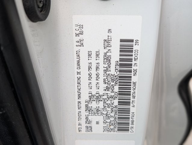 - Vehicle Name: Toyota Tacoma 2WD