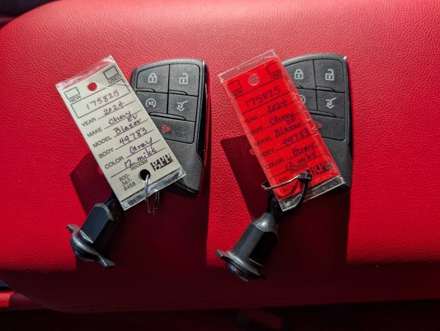 If you wish to have vehicle shipped to you, that is a separate charge determined by distance. Please use the listed price as the most up to date price. Brand Spanking Nearly New is the closest to new as used gets. These vehicles might not be new, but with miles this low and the factory warranty intact does it really matter? Every Near New vehicle has less than 5,000 miles on it and is no older than 3 years old. If you want to buy new but also want to save money, Brand Spanking Nearly New is the way to go. Elegantly expressive, this 2024 Chevrolet Blazer EV turns even the most discerning heads. With a Electric engine powering this Automatic transmission, it is an understated assertion of your dominion over the open highway. It's outfitted with the following options: WHEELS, 21" (53.3 CM) MACHINED-FACE ALUMINUM with Black painted pockets (STD), TRANSMISSION, NONE (ELECTRIC DRIVE UNIT) (STD), STERLING GRAY METALLIC, SIDE BICYCLIST ALERT, SEATS, HEATED REAR OUTBOARD PASSENGER CUSHION, SEATS, FRONT BUCKET (STD), RS PREFERRED EQUIPMENT GROUP includes standard equipment, RS CONVENIENCE AND DRIVER CONFIDENCE PACKAGE includes (WPN) Convenience and Driver Confidence Package, (UV6) Head-Up Display, (KCB) heated rear outboard passenger seat cushions, (DRZ) Rear Camera Mirror and (CMO) Heated Wiper Park, REVERSE AUTOMATIC BRAKING, and REAR PEDESTRIAN ALERT . The Accessories include 2 Master Keys
