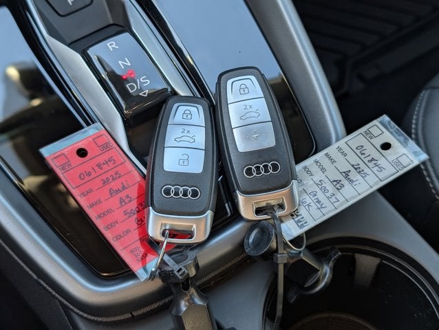 If you wish to have vehicle shipped to you, that is a separate charge determined by distance. Please use the listed price as the most up to date price. Bold and beautiful, this 2025 Audi A3 practically sings Puccini. With a Intercooled Turbo Gas/Electric I-4 2.0 L/121 engine powering this Automatic transmission, you will marvel at this unique synergy between the forces of mother nature and the laws of physics. It has the following options: Wireless Phone Connectivity, Window Grid Diversity Antenna, Wheels: 17" 5-V-Spoke Design, Valet Function, Trunk/Hatch Auto-Latch, Trunk Rear Cargo Access, Trip Computer, Transmission: 7-Spd S tronic Dual-Clutch Automatic, Transmission w/Driver Selectable Mode and Oil Cooler, and Tracker System . The accessories include 2 Master Keys.