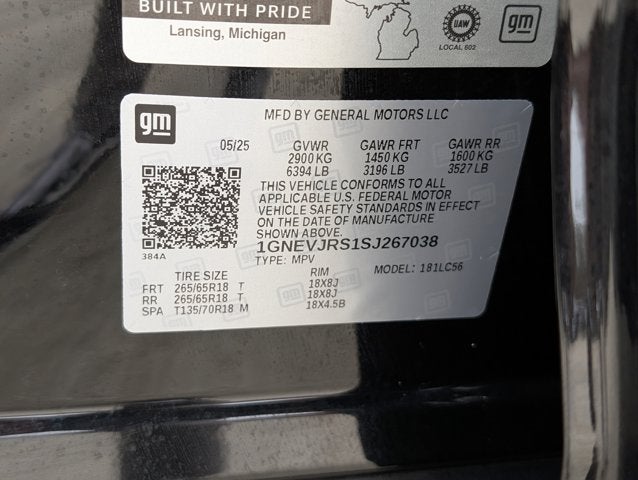 If you wish to have vehicle shipped to you, that is a separate charge determined by distance. Please use the listed price as the most up to date price. This vehicle is equipped with bucket seats in the second row. Passengers will enjoy a more comfortable ride and accessing the third row is easier. Sophisticated, smart, and stylish, this 2025 Chevrolet Traverse practically sings Puccini. With a Gas I4 2.5L/ engine powering this Automatic transmission, this ride is an intoxicating mix of precise machining and charm. It's outfitted with the following options: Z71 PREFERRED EQUIPMENT GROUP Includes standard equipment, Z71 JET BLACK WITH TORCH RED ACCENTS, EVOTEX SEAT TRIM, WHEELS, 18" (45.7 CM) HIGH GLOSS BLACK PAINTED MACHINED-FACE ALUMINUM (STD), TRANSMISSION, 8-SPEED AUTOMATIC (STD), TRAFFIC SIGN RECOGNITION, SEATS, FRONT BUCKET (STD), REAR PEDESTRIAN ALERT, POWER OUTLET, 120-VOLT, LOCATED ON THE REAR OF CENTER CONSOLE, MOSAIC BLACK METALLIC, and LICENSE PLATE FRONT MOUNTING PACKAGE (will be forced on orders with ship-to states that require a front license plate) . The accessories include 1 Master Key.