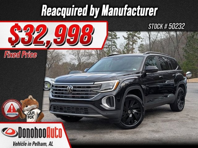 If you wish to have vehicle shipped to you, that is a separate charge determined by distance. Please use the listed price as the most up to date price. This vehicle has a notation on the Carfax that it was reacquired by the manufacturer. Simply put, the customer had a complaint about the vehicle and asked the manufacturer to take the car back. As a result, the trade value or selling price you will get for this vehicle is likely to be lower than for a similar vehicle that was not reacquired. This is reflected in the price you are paying for the vehicle now and why the vehicle is less expensive than a similar one that was not reacquired. In time, the difference in value between this vehicle and a normal vehicle will shrink. Therefore, if you plan to keep the vehicle for an extended period of time you will likely capture more of the savings of the lower price than if you sell or trade the vehicle within a short period after purchasing it. Elegantly expressive, this 2025 Volkswagen Atlas is a meticulous collaboration between pleasantness and polish. With a Intercooled Turbo Regular Unleaded I-4 2.0 L/121 engine powering this Automatic transmission, you'll marvel at this ultimate collaboration between the forces of mother nature and the laws of physics. It is stocked with these options: Wireless Phone Connectivity, Window Grid Diversity Antenna, Wheels: 20" 2-Tone Machined Alloy, VW Car-Net Safe & Secure 5-year Tracker System, Valet Function, Trunk/Hatch Auto-Latch, Trip Computer, Travel Assist (semi-automated driving assistance), Transmission: 8-Speed Automatic w/Tiptronic, and Transmission w/Driver Selectable Mode . It was previously reacquired by the manufacturer for a non-conformity to the warranty (Check engine light comes on). All necessary repairs were completed. The Accessories include 1 Master Key.
